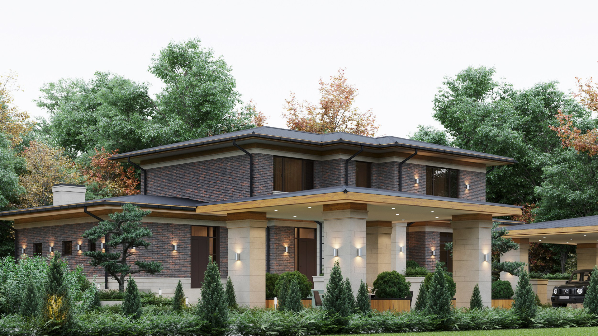Красивый двухэтажный дом в современном, очень теплом стиле, общей площадью 240 кв.м