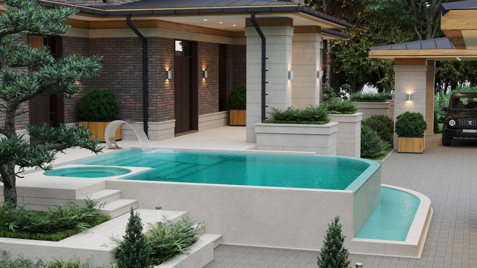 Современный дом в п.Мысхако общей площадью 360 кв.м с бассейном и местом под барбекю.
