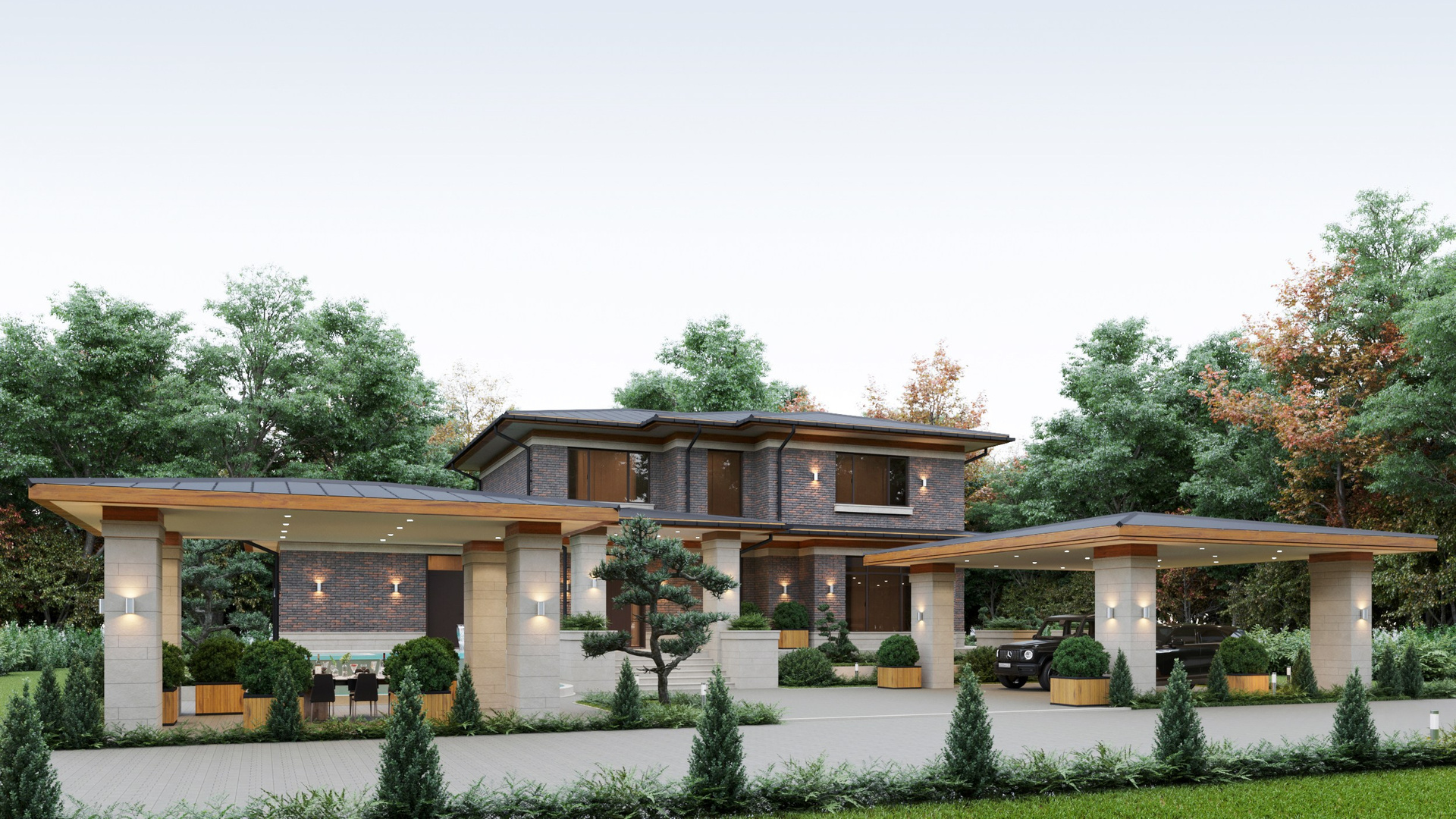 Проект дома с большими витражными окнами для ценителей изящных линий и современного дизайна.