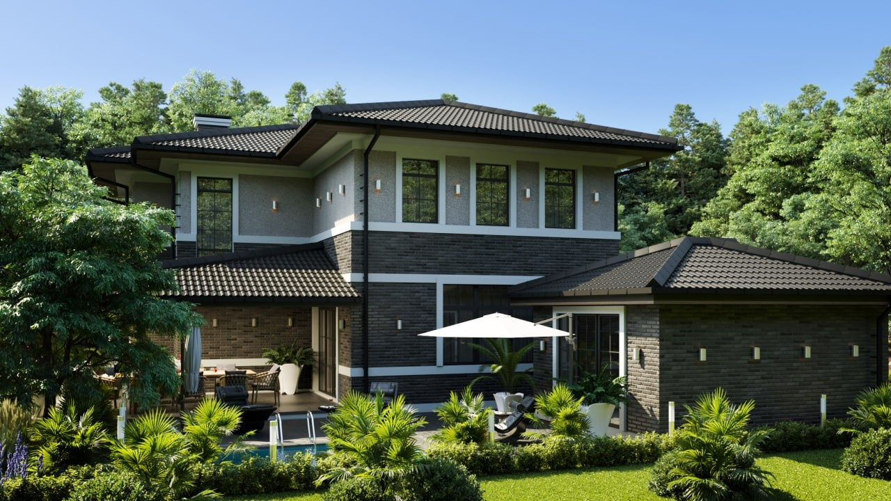 Современный дом в п.Мысхако общей площадью 360 кв.м с бассейном и местом под барбекю.
