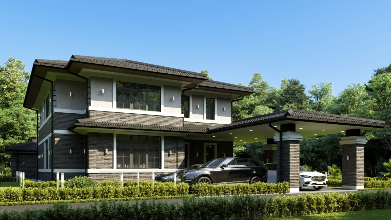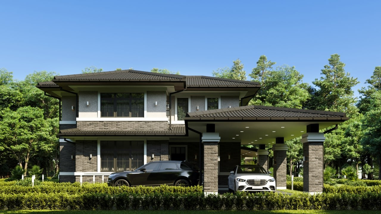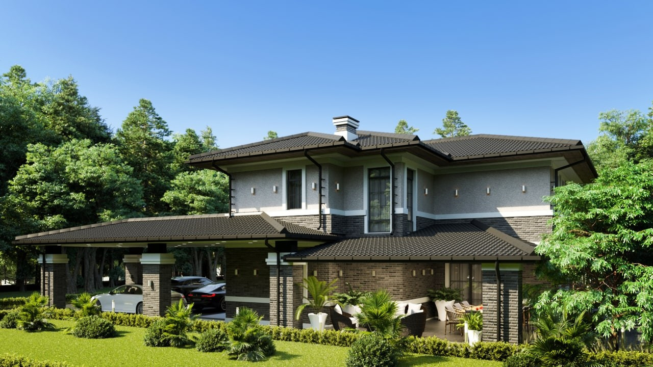 Проект дома с большими витражными окнами для ценителей изящных линий и современного дизайна.