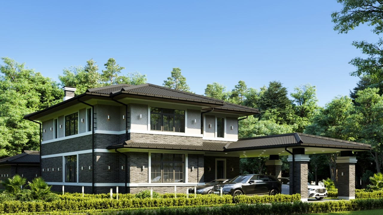 Двухэтажный дом в современном стиле в п.Мысхако общей площадью 217 кв.м